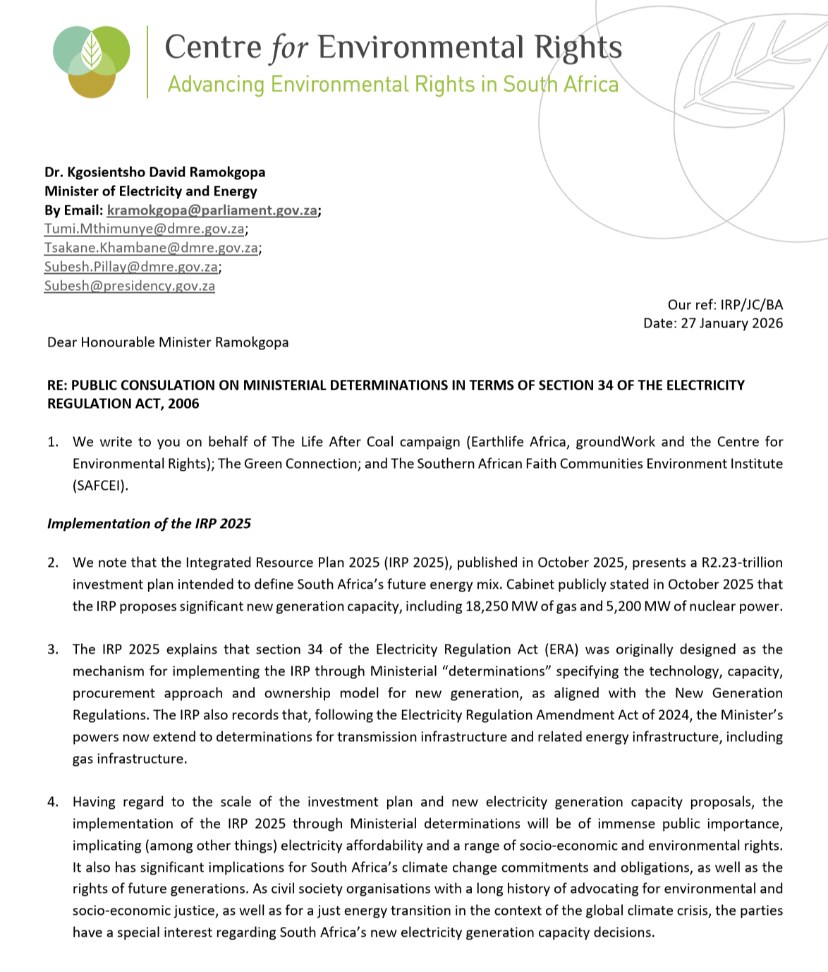 Civil Society Rejects Gas Expansion Plans In Draft IRP – Warns It’s A Costly Mistake The Public Cannot Afford