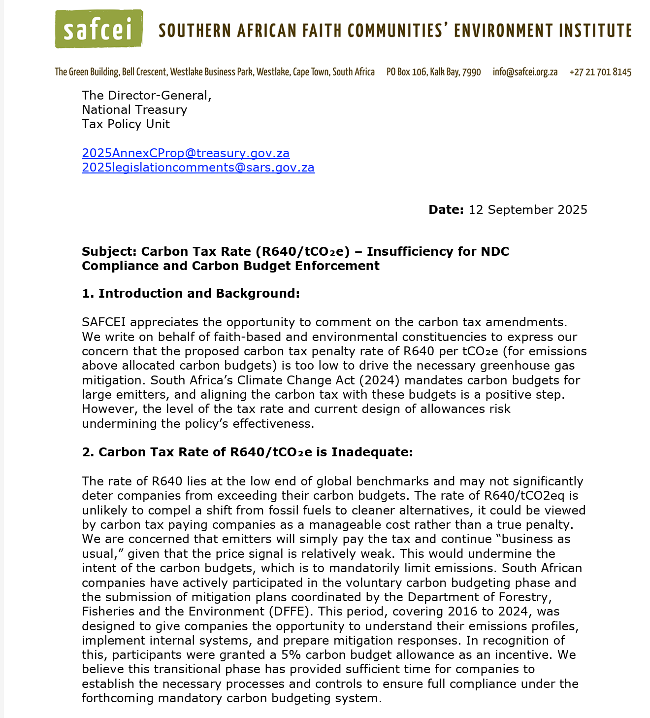 Click here to read the Carbon Tax Rate (R640/tCO₂e) – Insufficiency for NDC Compliance and Carbon Budget Enforcement...